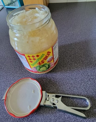 Opening a tightly-closed jar of pickles (or almost any other jarred food) can be rather difficult for anyone--but especially for those who are getting older (as we all are!). This adjustable jar opener gives good grip and leverage, making the task much easier.