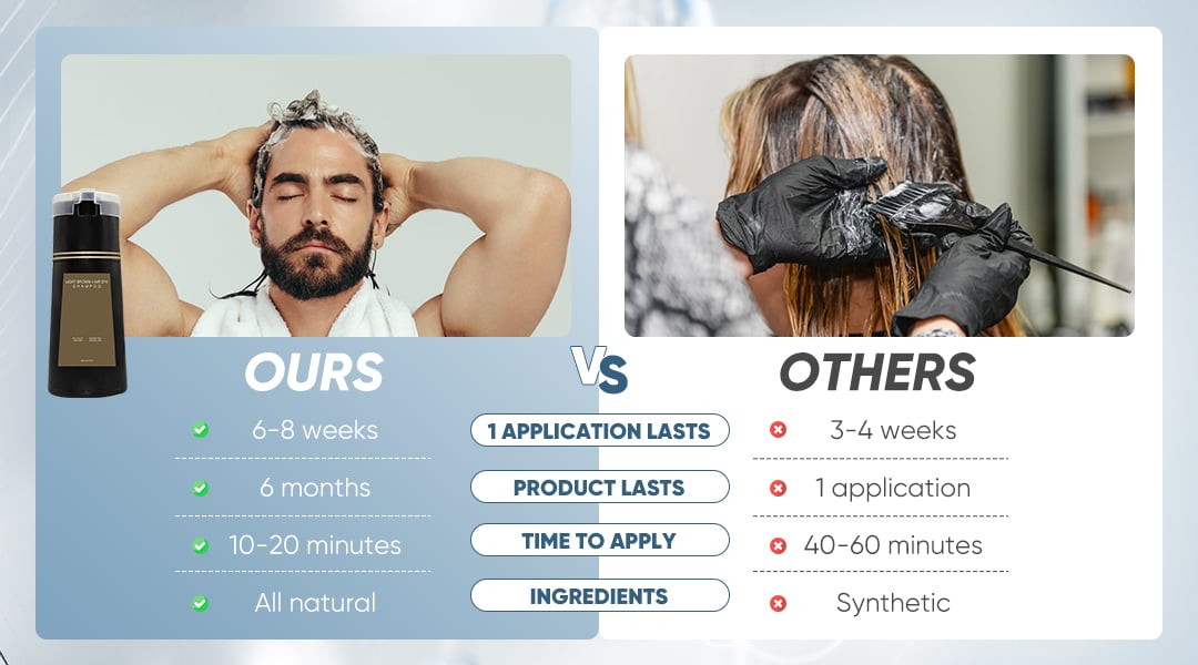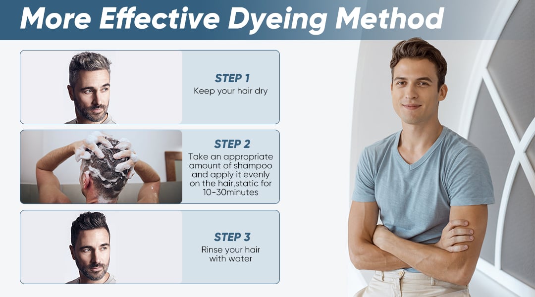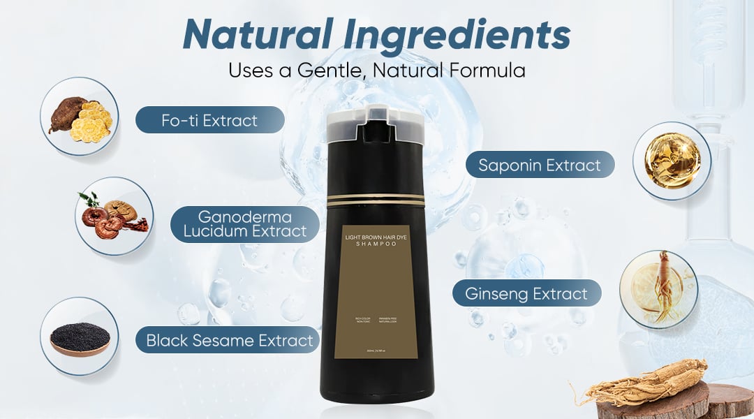 Natural ingredients, our hair dye shampoo nourishes your hair while providing gray coverage, ensuring luxuriously shiny and healthy hair.