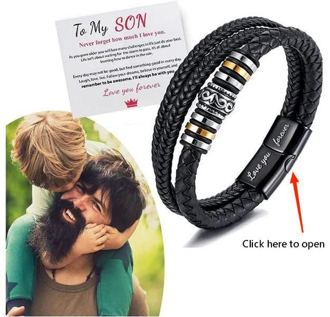 Great Gift: This to my Son, Grandson, Husband wristband bracelet makes an ideal gift for men, perfect for any gift giving occasion. As a bracelet for your Son, Husband or others, handwriting your own greetings will be the greatest encouragement to the person who receives the gift!