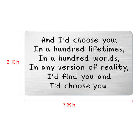 💖This is a metal laser engraved wallet card that slips into any wallet, it's roughly the size of a credit card / business card. Our cards have become very a popular gift choice for anniversaries, deployments, long distance relationships, Mothers Day,Fathers Day, Valentines Day, Christmas, and more.